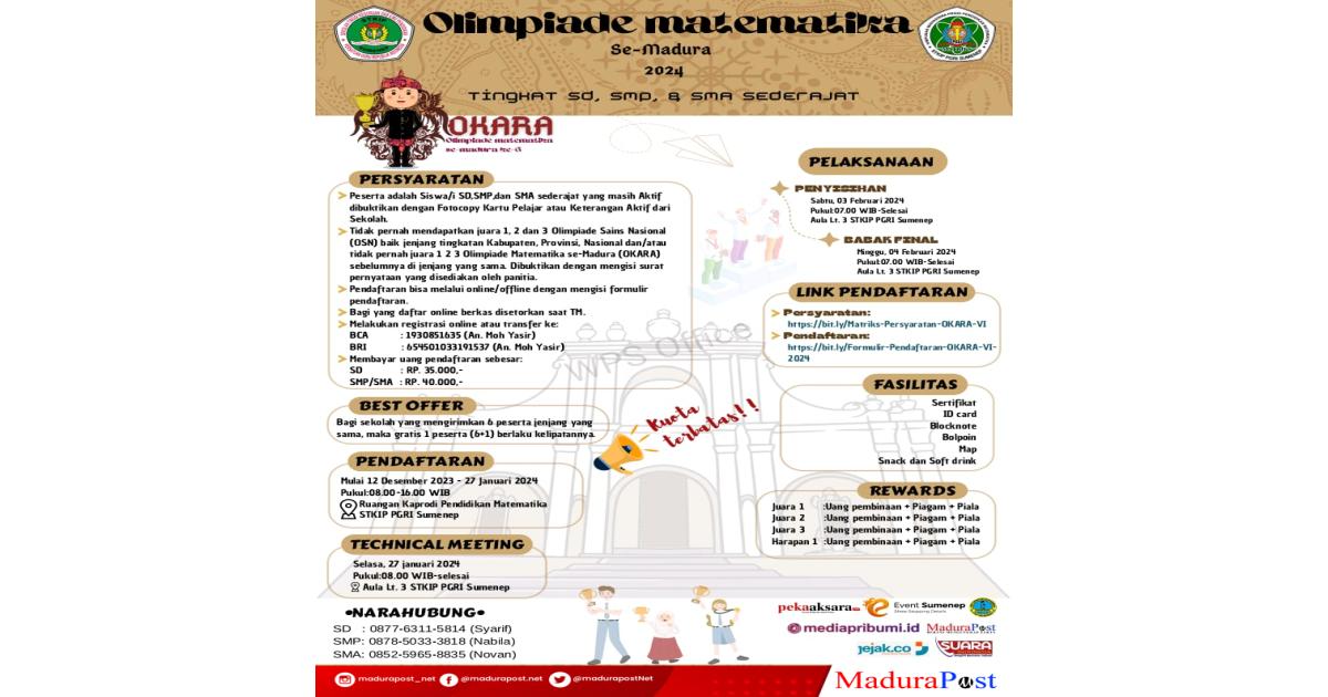 SUMENEP, MaduraPost – Olimpiade Matematika se Madura (OKARA)…